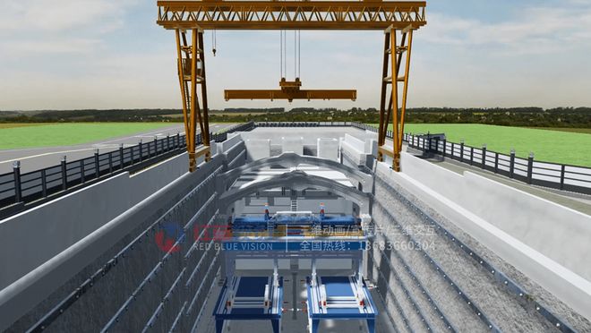 ②合理光照与渲染设置:光照设置要考虑施工环境,例如白天、夜间或隧道施工等不同场景。渲染时优化光影效果和反射材质,使动画更具真实感。③流畅动画与镜头切换:设计合理的摄像机运动轨迹和动画关键帧,使施工过程连贯、易于理解。对复杂动作如机械吊装、混凝土浇筑进行慢动作或分解展示,提高观赏性和专业性。④后期剪辑与信息标注:添加施工说明、关键步骤标注、动态字幕和音效,提高信息传递效率。对动画进行剪辑和压缩,确保动画在网页端、移动端播放流畅。